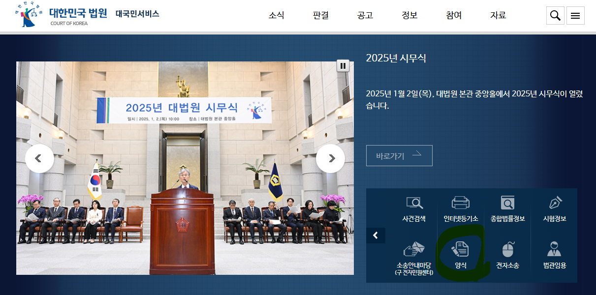 (1)대한민국법원 사이트(https://www.scourt.go.kr/scourt/index.html)를 접속합니다.