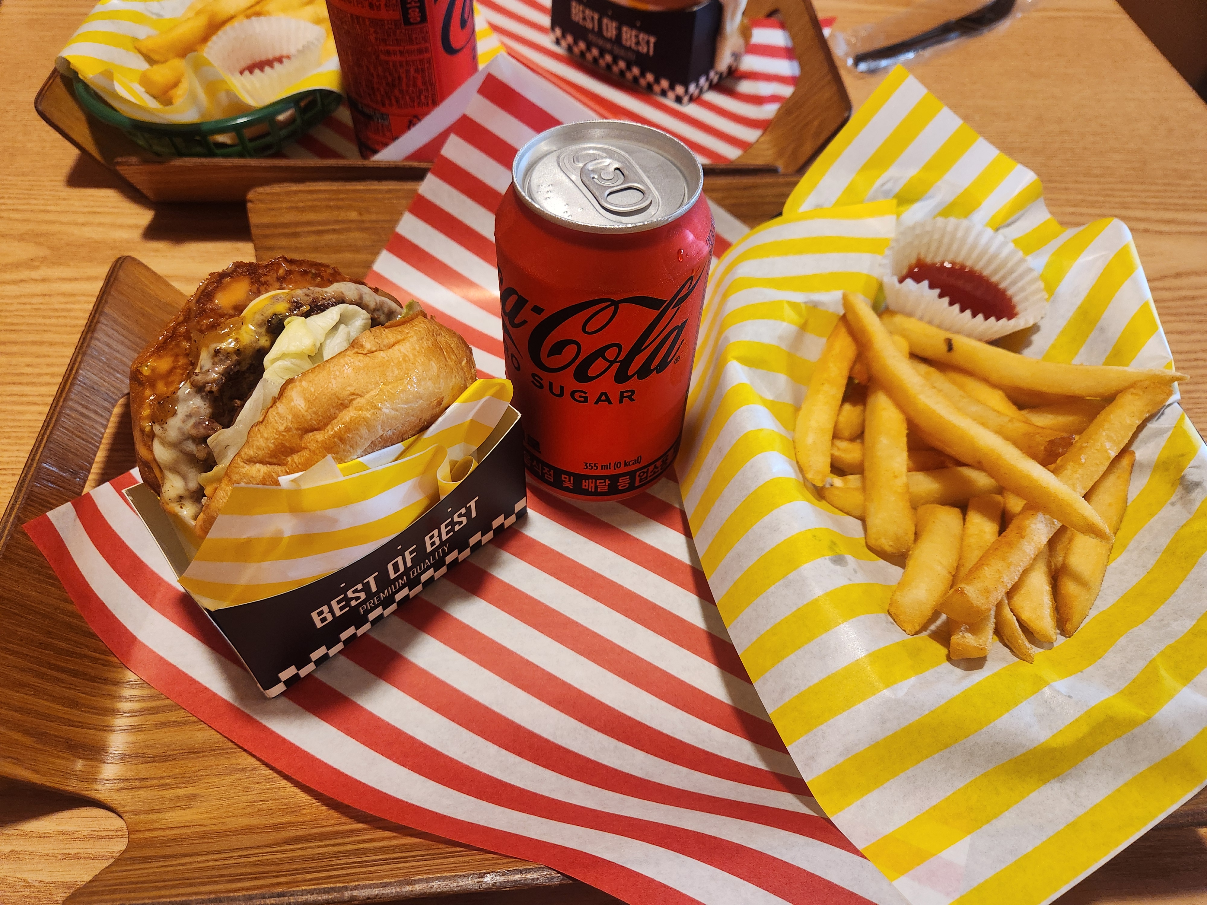 아래의 메뉴를 포함하여 총 7개의 종류가 판매되고 있으며, 세트의 경우에는 감자튀김+음료를 제공해주고 있습니다.