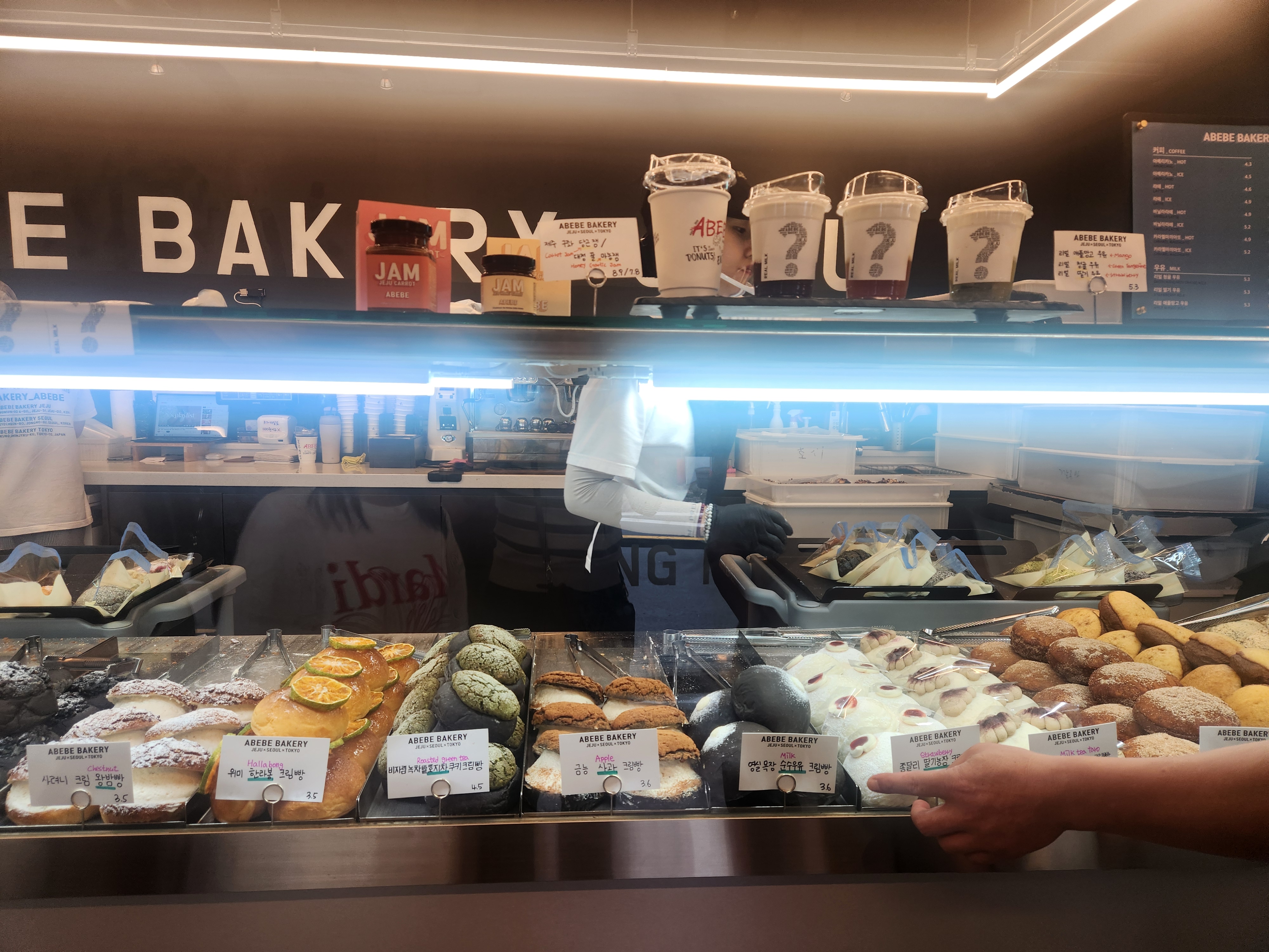 제주 동문시장 12번 게이트 옆을 보면 검은색 건물의 아베베베이커리 빵집이 있습니다. 걸어서 1분도 채 걸리지 않는답니다. 솔찍히 처음에 빵집으로 맛집을 검색한게 아니라서 갈 생각이 없었는데, 주변에서 밥을 먹고 있는데 사람들이 막 줄을 서고 있는 것 아니겠어요? 맛집의 냄새가 나는 곳을 그냥 지나칠 수는 없죠