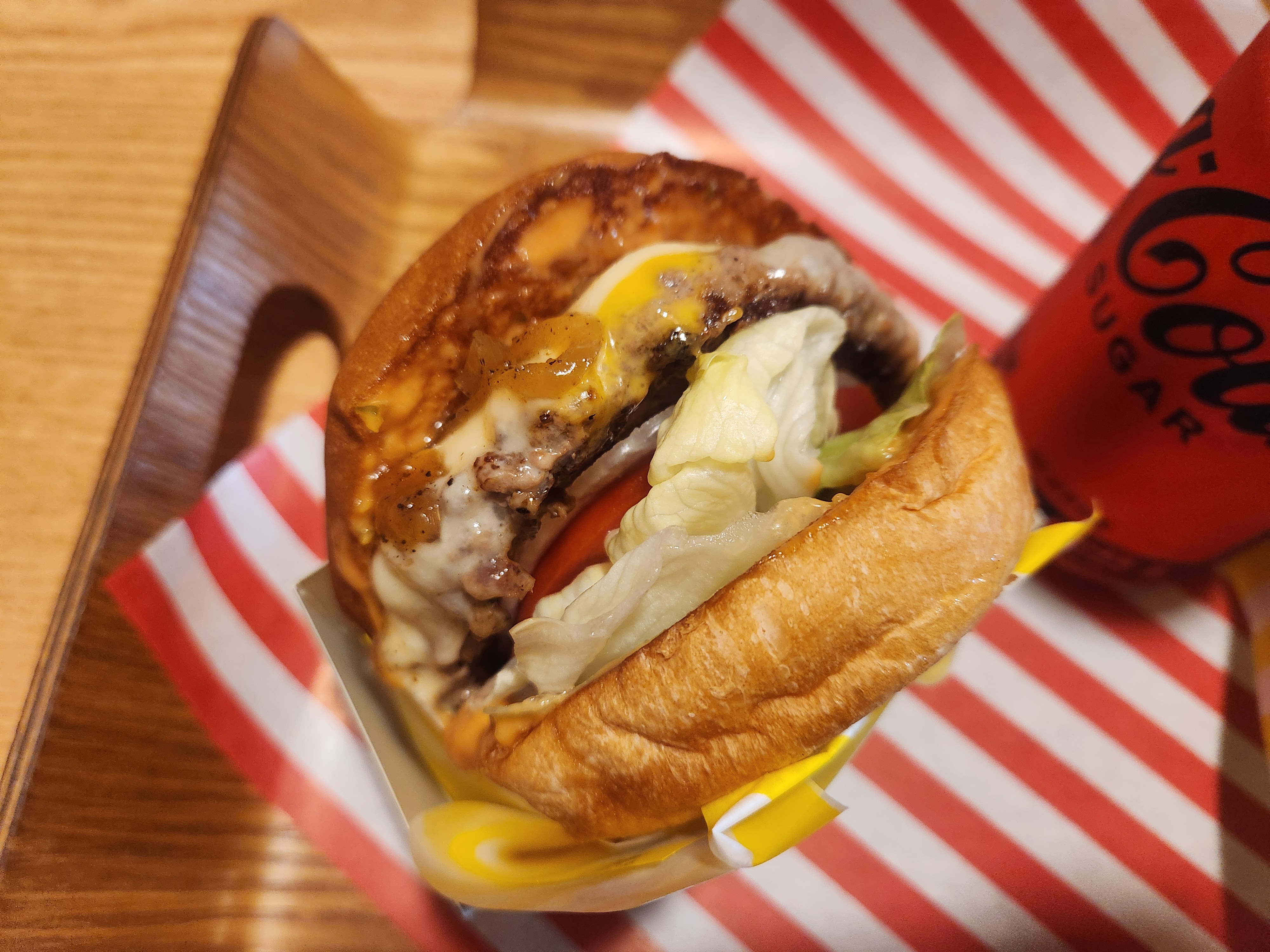 주문은 키오스크를 통해 주문하게 되어 있고요, 매장에서 먹거나 포장을 선택할 수 있습니다. 수제버거는 단품 또는 세트를 주문할 수 있는데요. 세트는 감자튀김+음료가 함께 나옵니다. 이때 나오는 음료는 캔으로 제공됩니다. 제로슈가를 원하시는 분들을 위해 제로콜라도 펩시가 아닌 코카콜라로 제공된답니다.