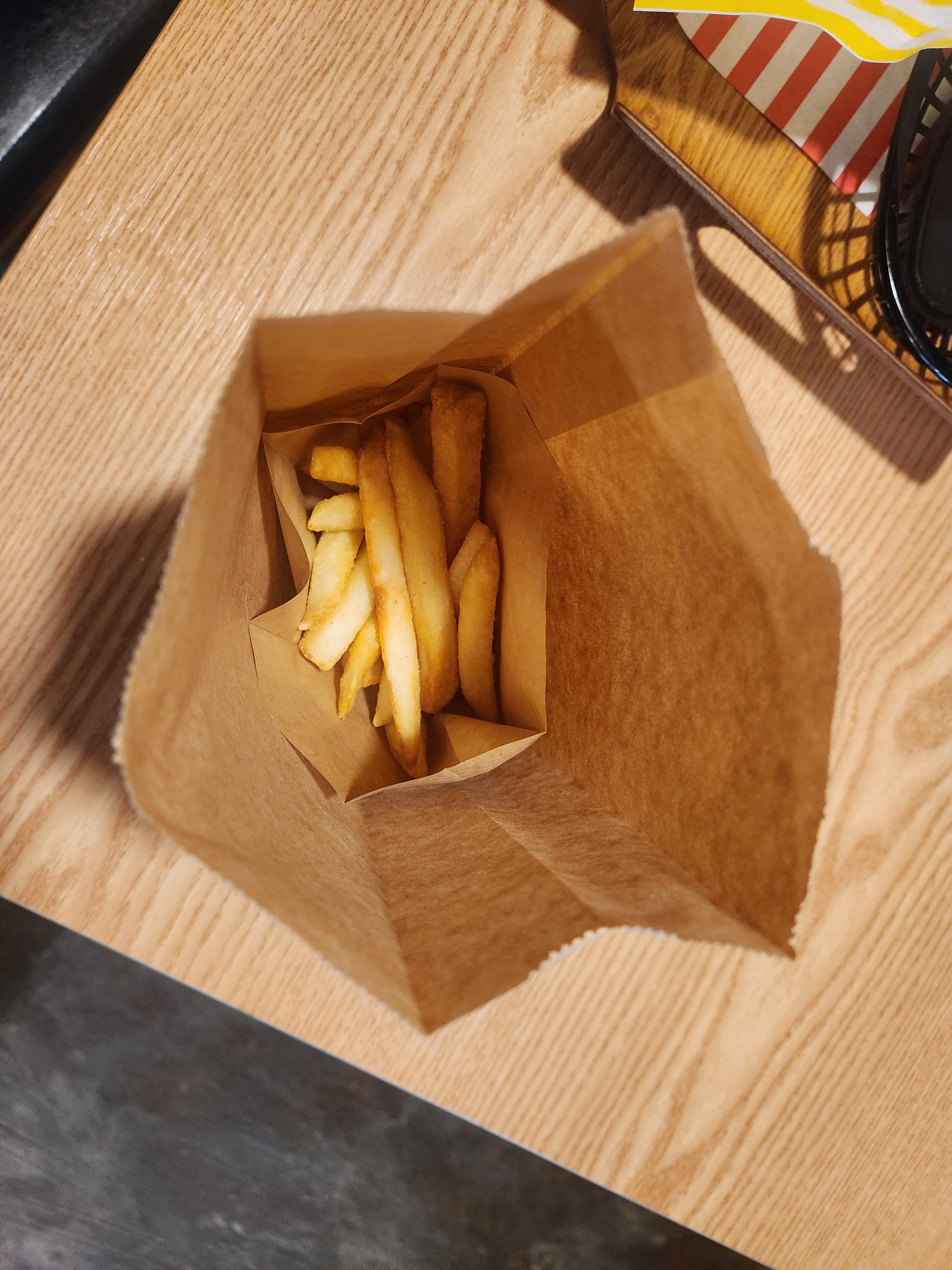 점원분에게 말씀드리니 감자튀김을 포장할 수 있게 포장 종이를 두개나 주시더라고요. 꼭 패스트푸드점에서 포장해 가는 것 같죠? 남은 음식 포장이 필요하다면 점원분에게 말씀하셔서 꼭 포장해오세요. 여행 중 출출해질때 꺼내먹기 너무 좋더라고요.
