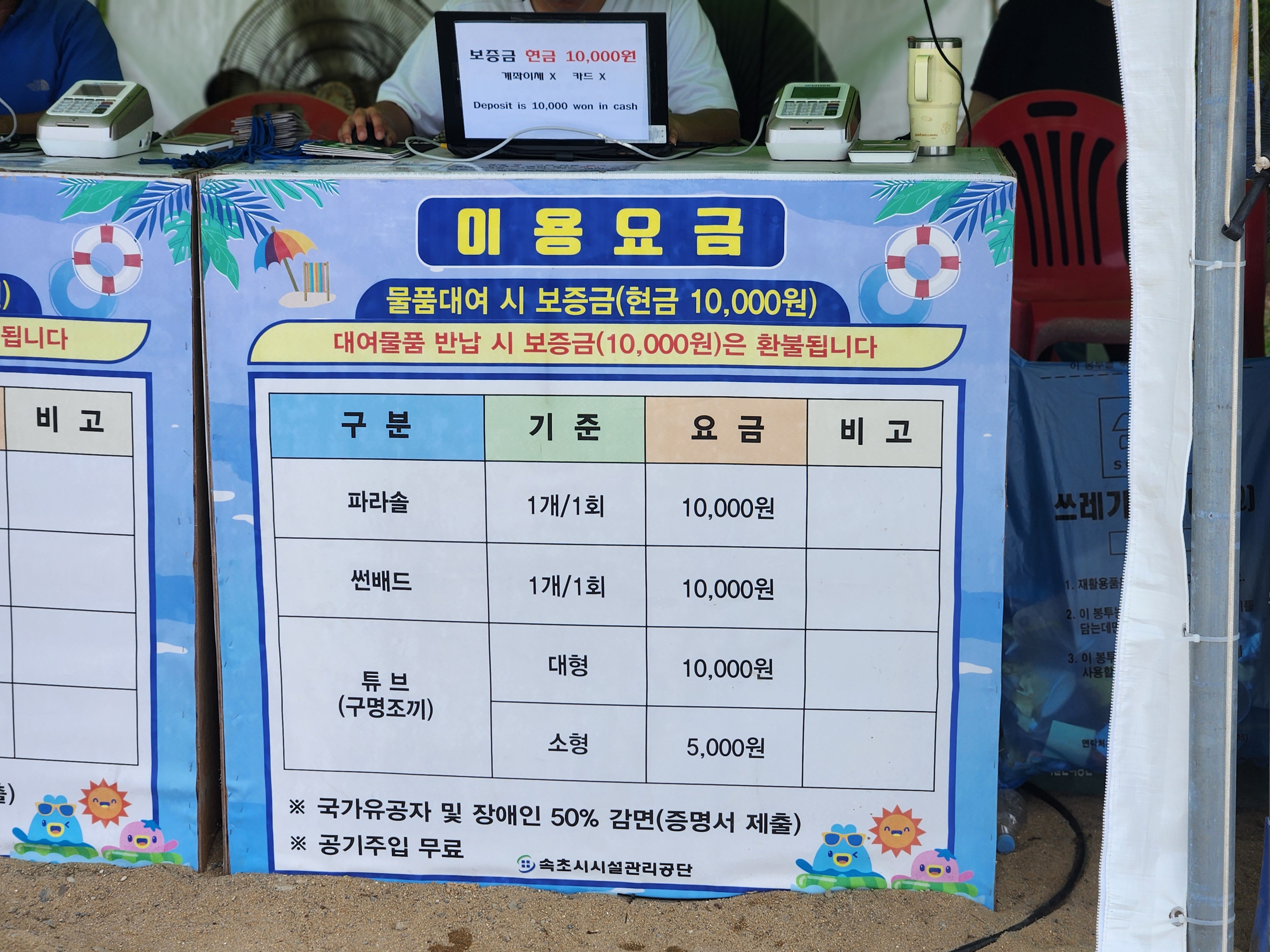 피서철을 맞아 바가지 요금, 바꿔치기 등 피서객들의 피해가 우려되어 합동점검반을 구성해서 물가안정 대책을 추진한다고 합니다. 이러한 노력때문인지 인기가 많은 동해안의 대표 해수욕장 중 하나인 만큼 비싼 요금이 걱정되었는데요, 우려와 다르게 이용 시설물들이 합리적인 가격이었습니다.
